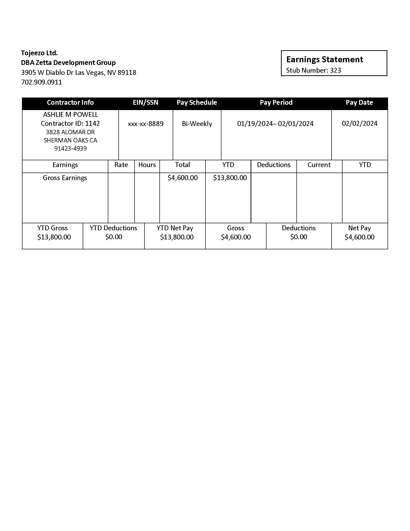Ashlie Pay Stub 323 Feb 02 2024